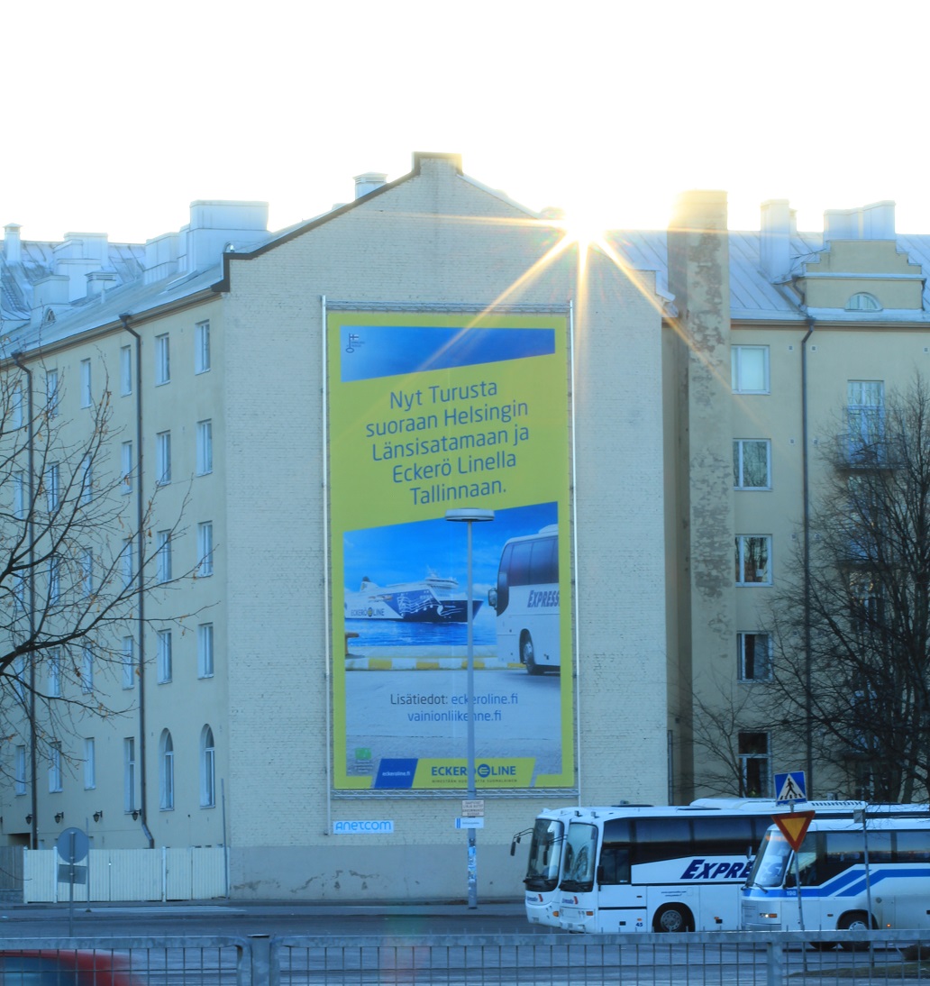 | Kuvaus | Jättimainospinta Turun keskustassa Linja-autoaseman vieressä. Mainospaikka on laadukkaasti toteutettu ja se näkyy pitkälle. |